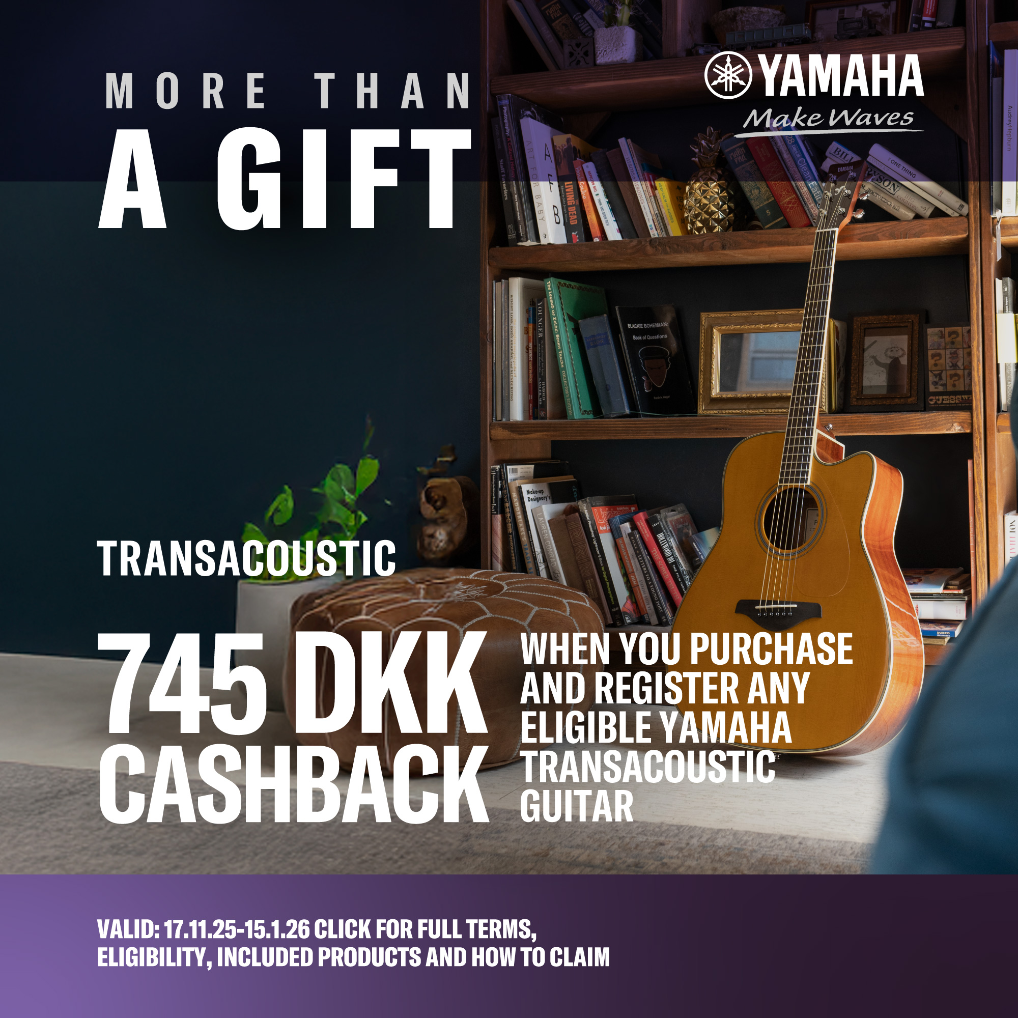 At spille guitar i et rigtig godt rum er noget af det mest inspirerende - det er langt sjovere end at spille i et trist rum, der ikke komplementerer guitaren. Yamahas TransAcoustic Guitar kan give dig oplevelsen af at spille i en dejlig levende akustik, uden at bruge ekstern forstærkning eller effekter - det kræver bare guitaren. Om det er til øvning, sangskrivning, indspilning eller bare at spille for sjov - en TransAcoustic guitar vil gøre, at du spiller bedre, mere kreativt og i længere tid. Når du først har oplevet det, vil du ikke have lyst til at spille på en anden akustisk guitar igen.